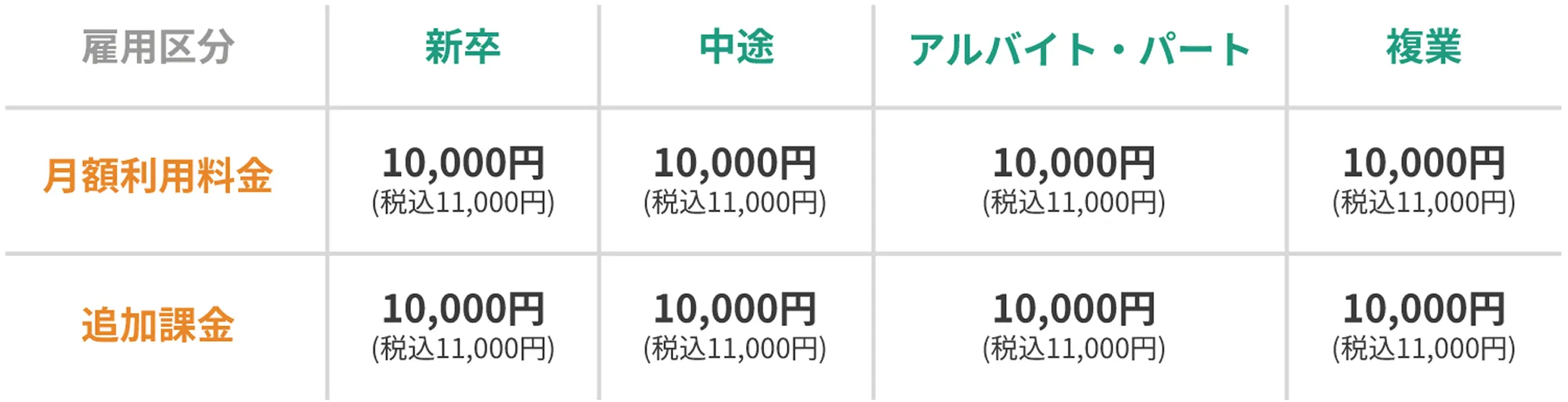 ※雇⽤区分1つにつき、上記⾦額の⽀払いが発⽣する料⾦プランです。