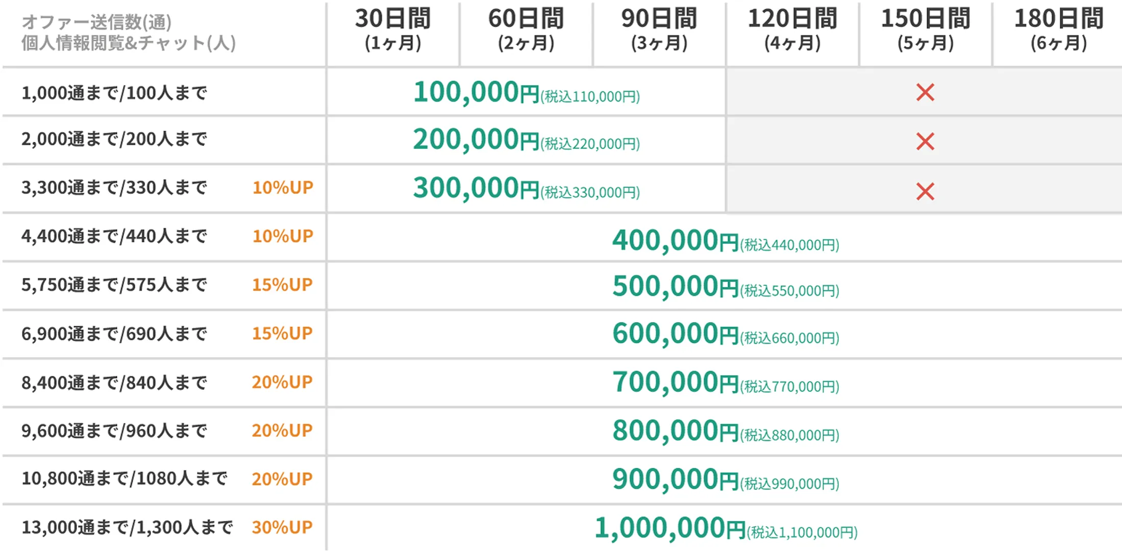 ボリュームパックのみ、⾃動オファー送信機能付き